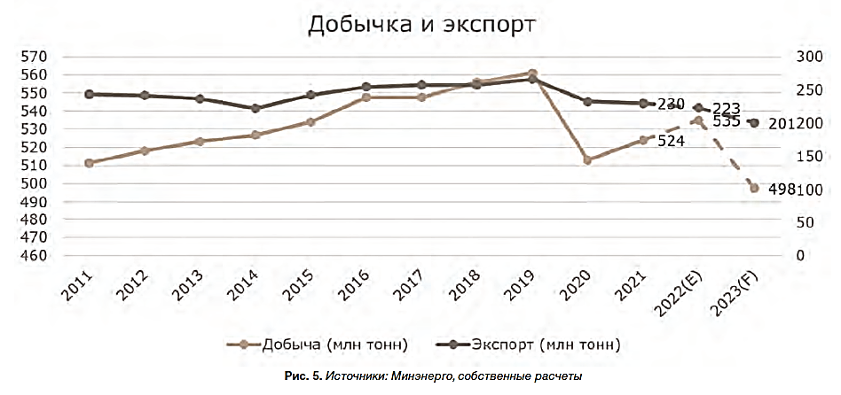 Падение добычи и экспорта в 2020 году произошло из-за пандемии и участия РФ в сделке ОПЕК. Возвращения к объемам 2019 года не прогнозируется (рис. 1.6).