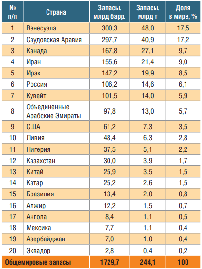 Таблица 1.1 - Доказанные запасы нефти в странах, обладающих наибольшими запасами