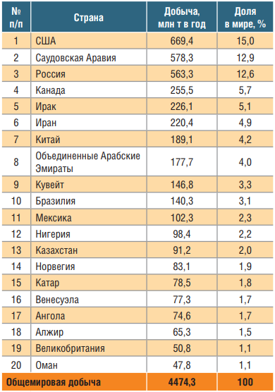 Главными нефтедобывающими странами в мире являются США, Саудовская Аравия и Россия.