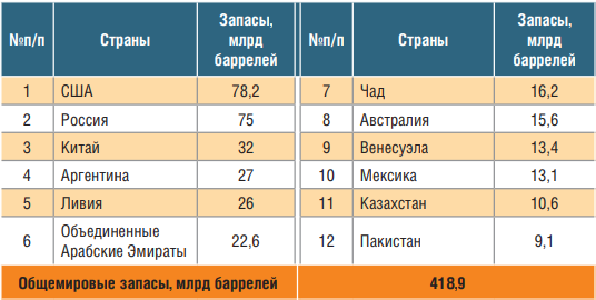 Таблица 1.7 - Извлекаемые запасы сланцевой нефти в странах, обладающих наибольшими запасами