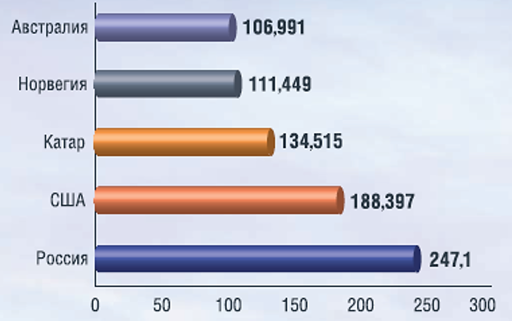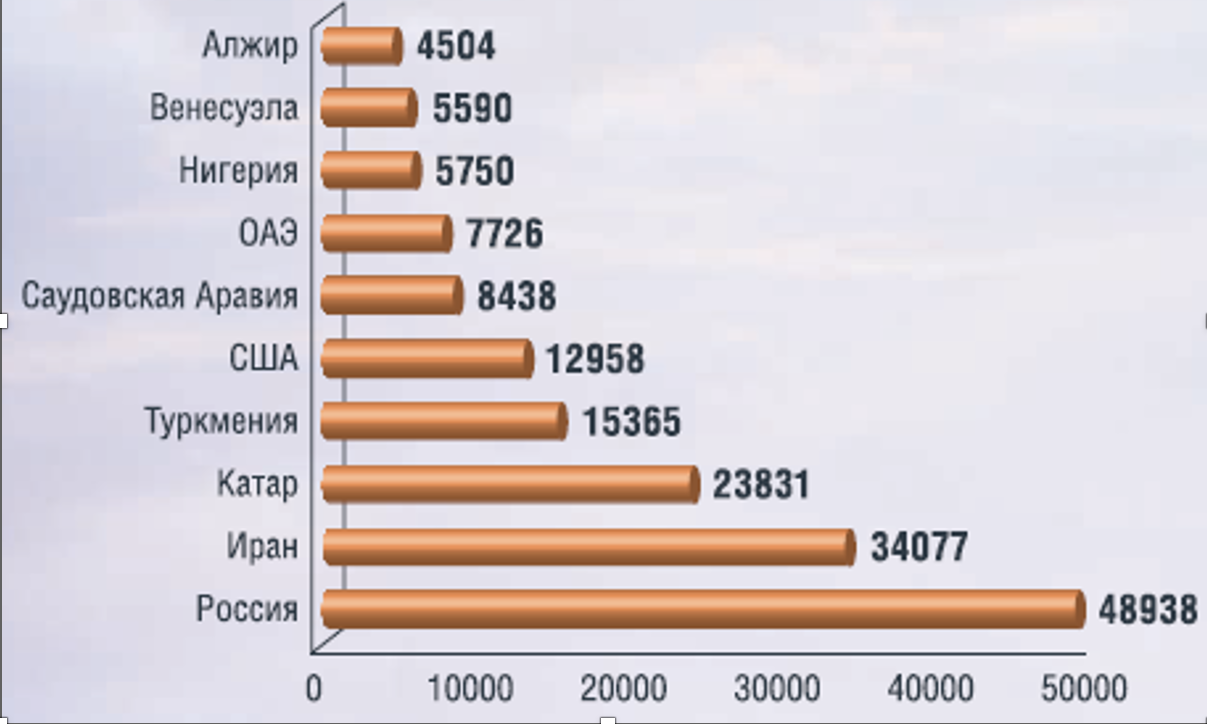 Природный газ является важнейшим стратегическим природным ресурсом Российской Федерации. Газовая отрасль России характеризуется наличием значительных ресурсов газа и газового конденсата и занимает по этому показателю лидирующие позиции среди прочих газодобывающих стран (рис. 2.1) [1].
