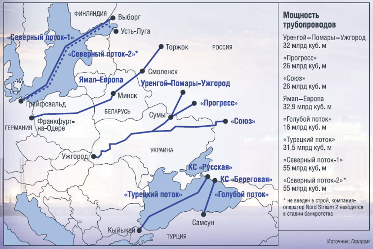 Рисунок 2.5 - Основные трубопроводы для экспортных поставок российского газа в Европу